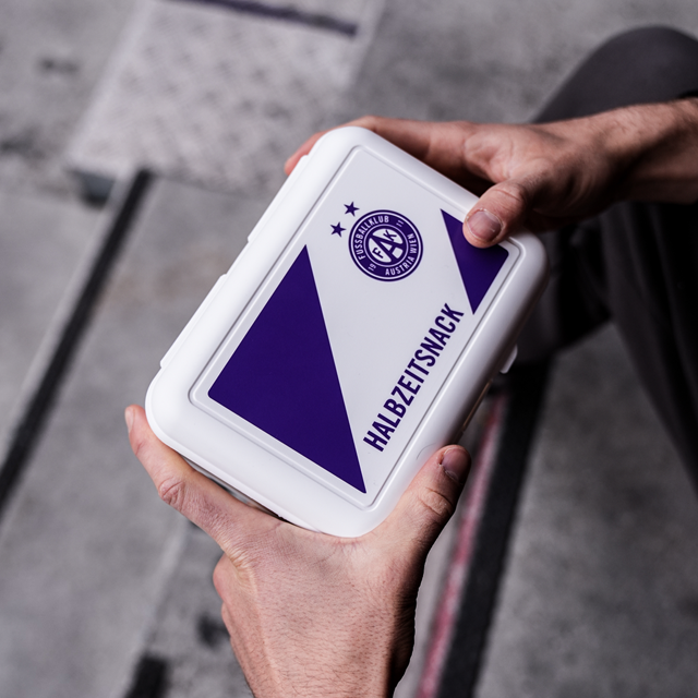 Die perfekte Jausenbox für alle Violetten! In elegantem Weiß mit dem Schriftzug "Halbzeitsnack" – ideal für deine Pausenverpflegung beim Training, in der Schule oder unterwegs. Die praktische Box hält deine Snacks frisch und sicher verstaut, während das coole Motiv für Hingucker sorgt.