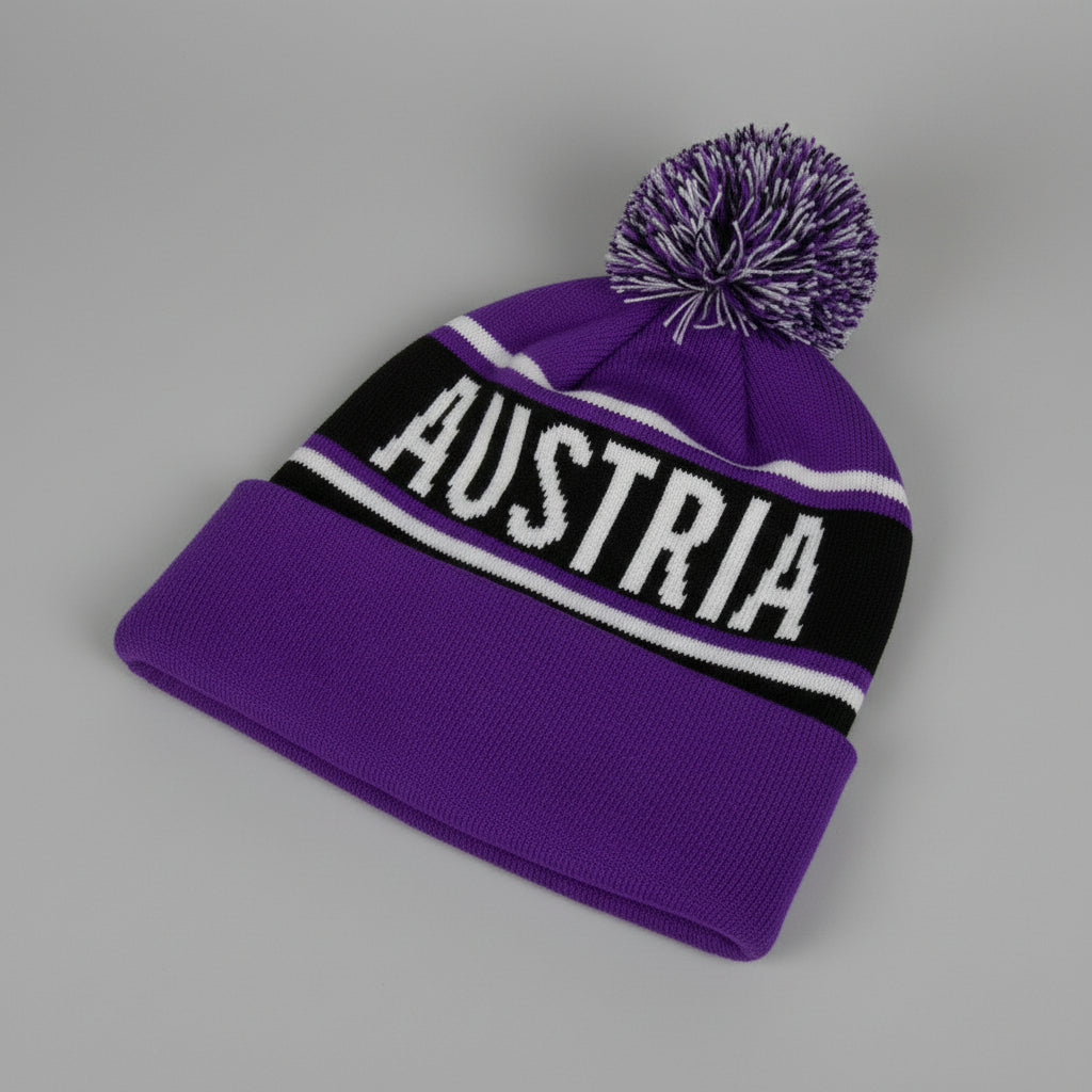 Flauschig, frech und voller Austria-Liebe! Diese violette Kinder-Haube mit kuschelweichem Bommel kombiniert elegante Schwarz-Weiße-Details mit dem eingearbeiteten Austria-Schriftzug – ein echtes Statement für kleine Fans. Der fluffige Bommel obendrauf sorgt für den perfekten Wohlfühl-Faktor, während das klassische Design zeitlos cool bleibt.