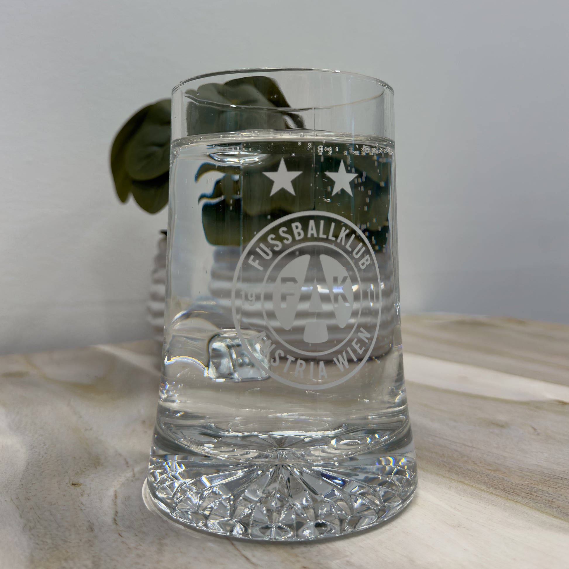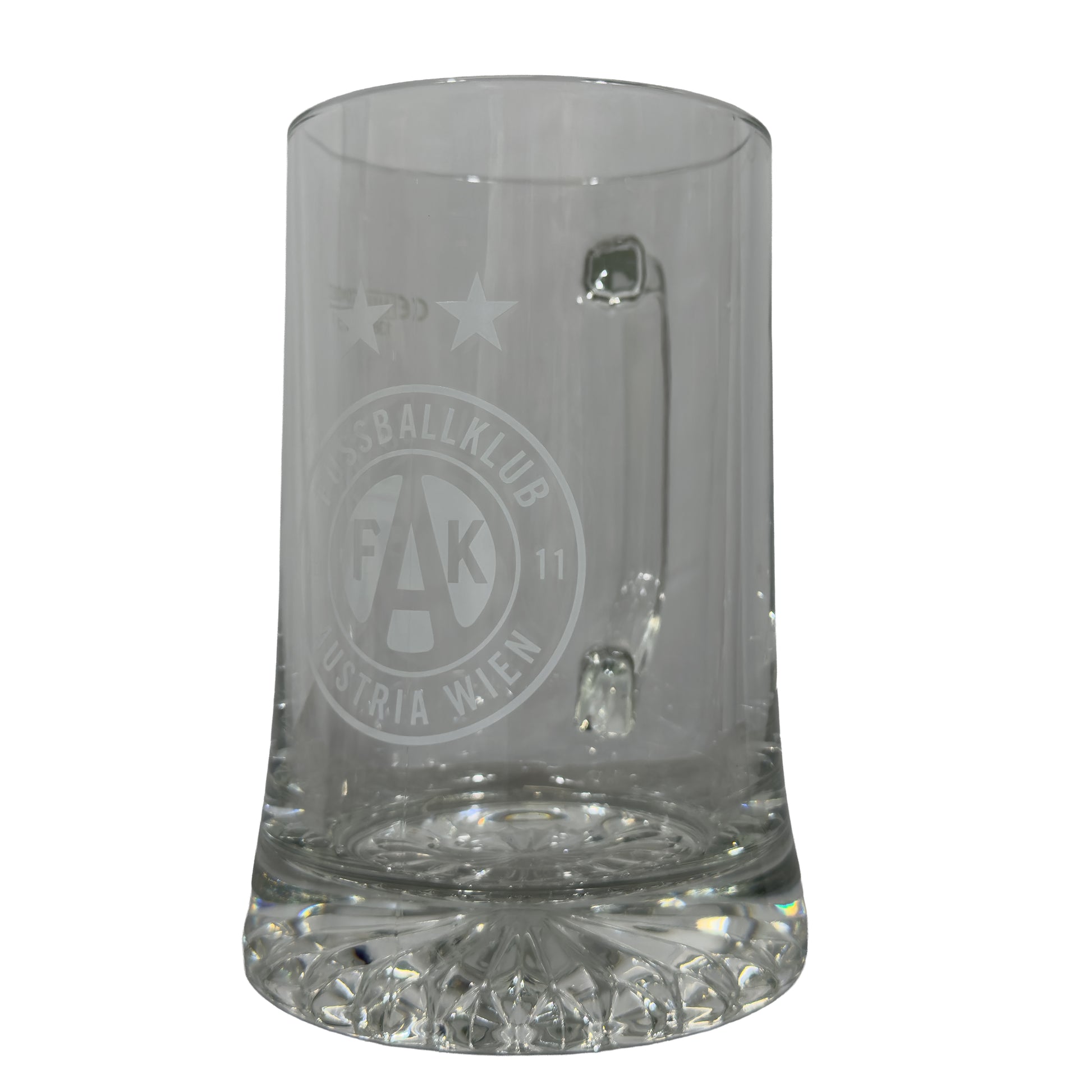 Hochwertiges Krügerl mit elegantem Boden in Kristalloptik. Das großzügig platzierte FK-Austria-Logo macht dieses Krügerl zum perfekten Accessoire für echte Austrianer.