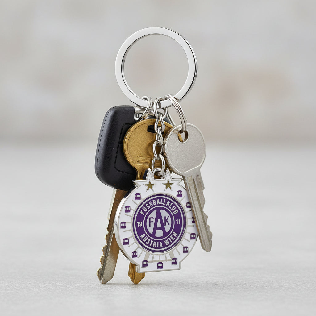 Genialer 2-in-1 Schlüsselanhänger mit Wiener Riesenrad-Design und praktischem Mehrwert! Das herausnehmbare FAK Logo funktioniert als Einkaufswagen-Chip. Das charmante Riesenrad-Motiv bringt Wien-Flair in deinen Alltag, während du gleichzeitig deine Austria-Leidenschaft zur Schau stellst. Praktisch und unverzichtbar für jeden Fan. Ein Schlüsselanhänger, der mehr kann!